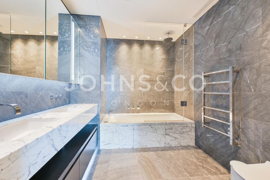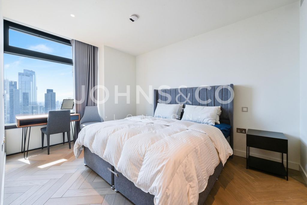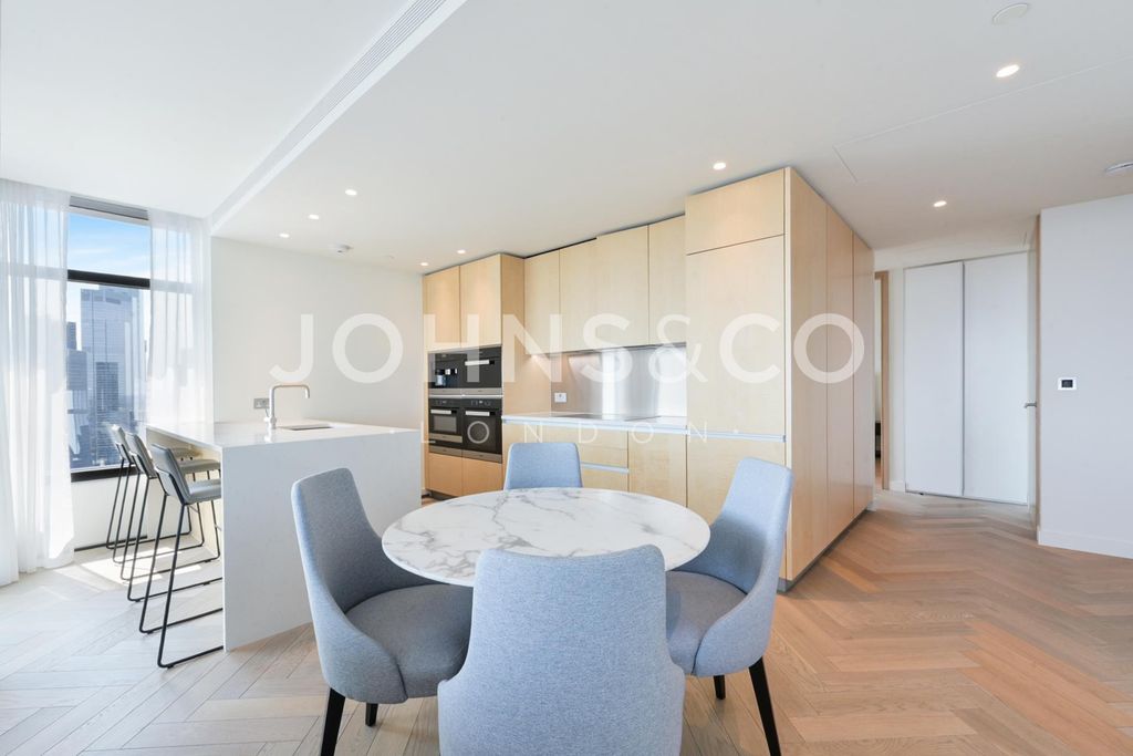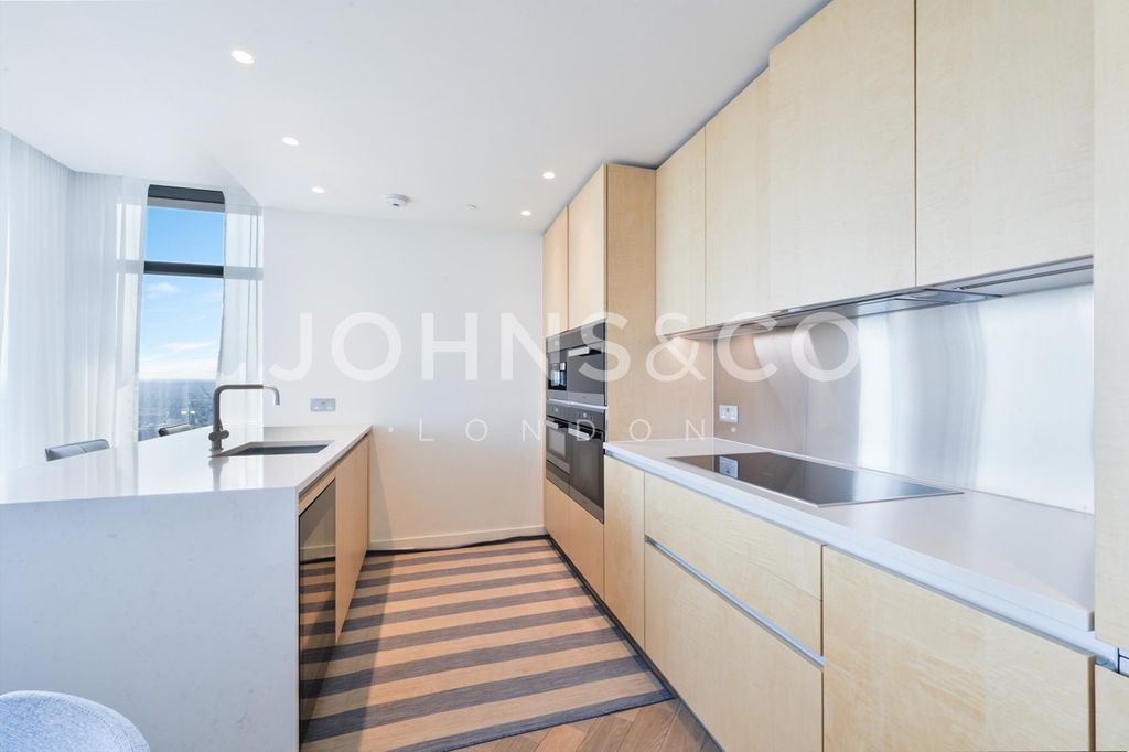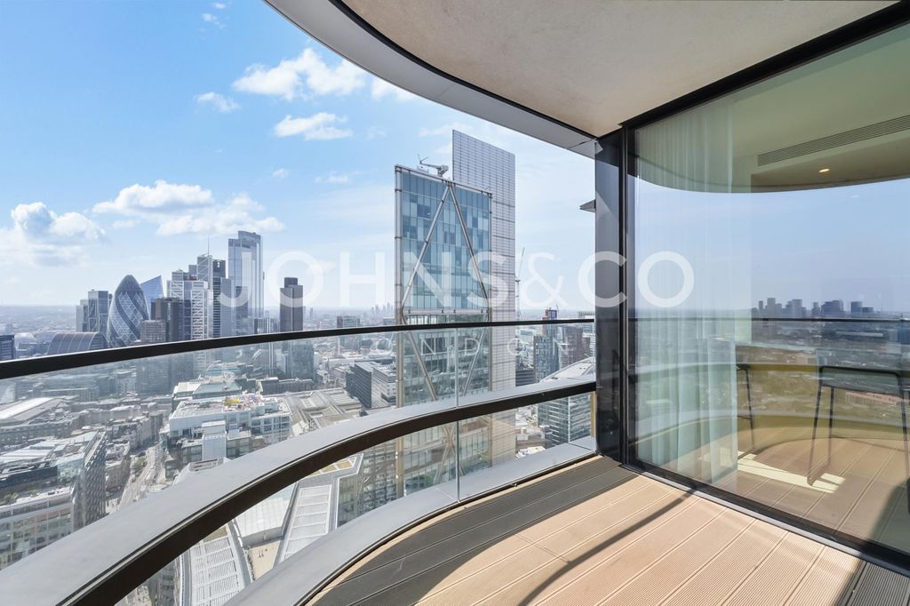 Three bedrooms, three bathrooms, two balconies with east and south-facing views, 1,092 sq ft on the 39th floor. 24-hour concierge, residents' gym, spa and swimming pool. Liverpool Street station moments away. This exceptional apartment on the 39th floor of the prestigious Principal Tower opens into a spacious open-plan living, dining and kitchen area, where floor-to-ceiling windows frame spectacular panoramic views of the City.
